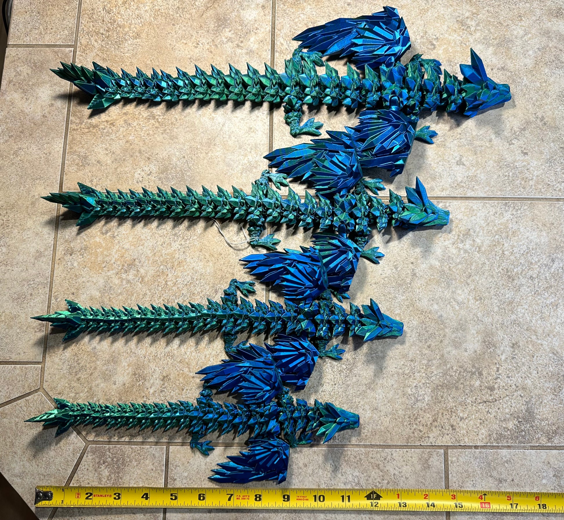 This dragon is 3D printed with environmentally friendly, non-toxic, PLA thermoplastic derived from corn. Because of variables in the filament and printers, each dragon is unique and may look slightly different than the photos. But don't worry, it just means that your dragon will be one of a kind!