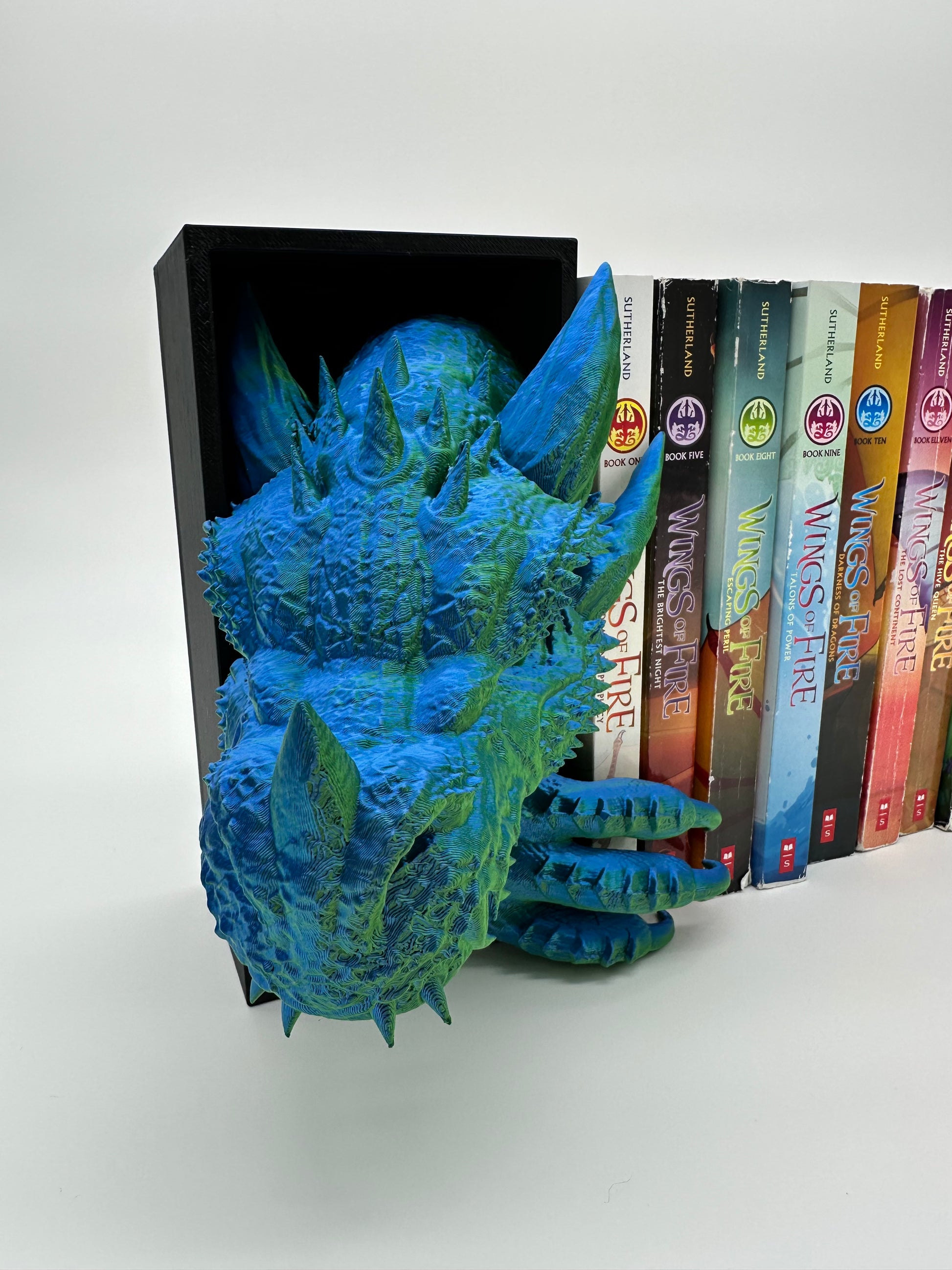 This is the piece of decor your bookshelf is missing! This set includes an amazing dragon head peeking out from a nook and a tail wrapping through the shelf. Offering multiple colors, you can customize your bookshelf to best represent your style.